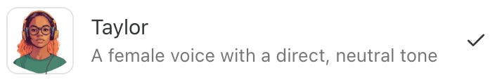 If you used Substack, come back in an hour and open up your article inside of the app. Press the play button (change the voice AI to Taylor in the settings—I find her voice extremely erotic, perhaps you will too) and hear as a sultry female voice reads your brilliant work aloud.